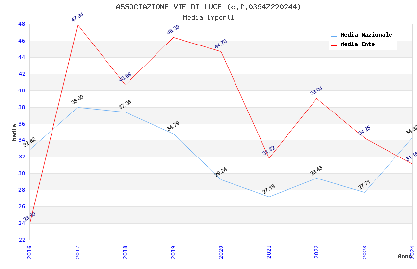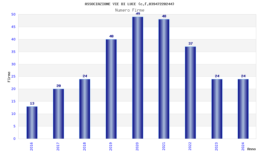 | Anno | Firme | Importi | Media | Naz. | Reg. | Prov. | Comu. |