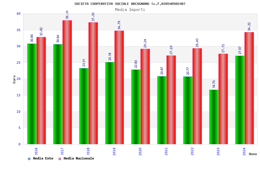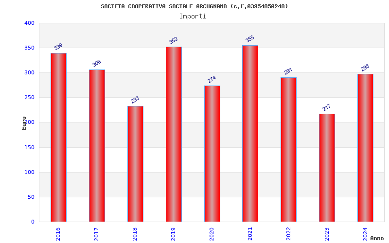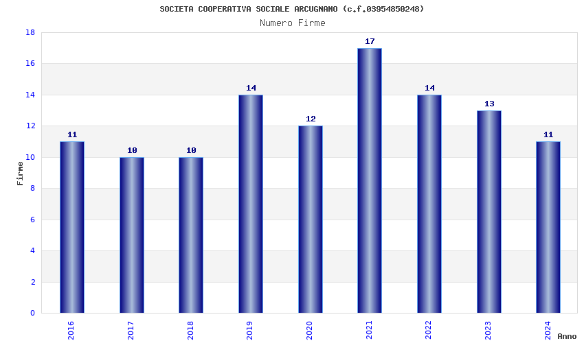 | Anno | Firme | Importi | Media | Naz. | Reg. | Prov. | Comu. |