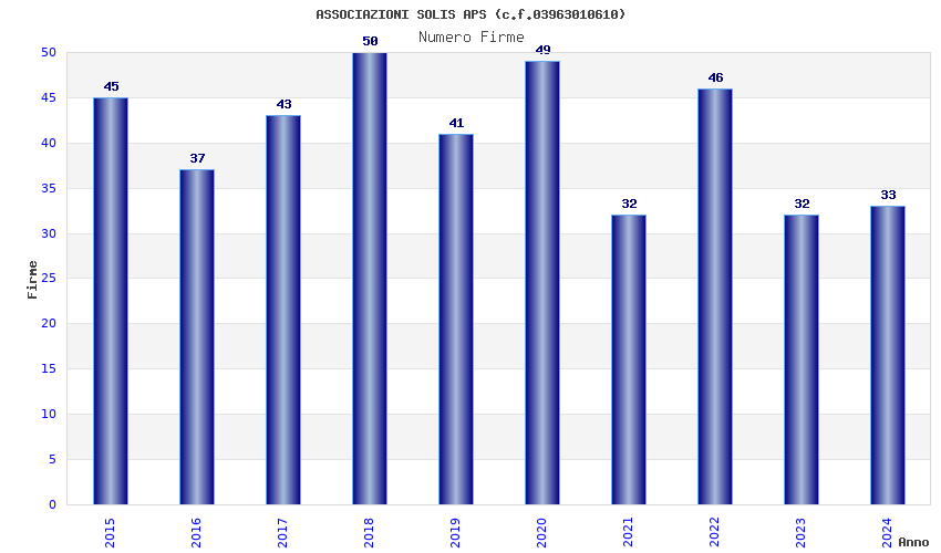 | Anno | Firme | Importi | Media | Naz. | Reg. | Prov. | Comu. |