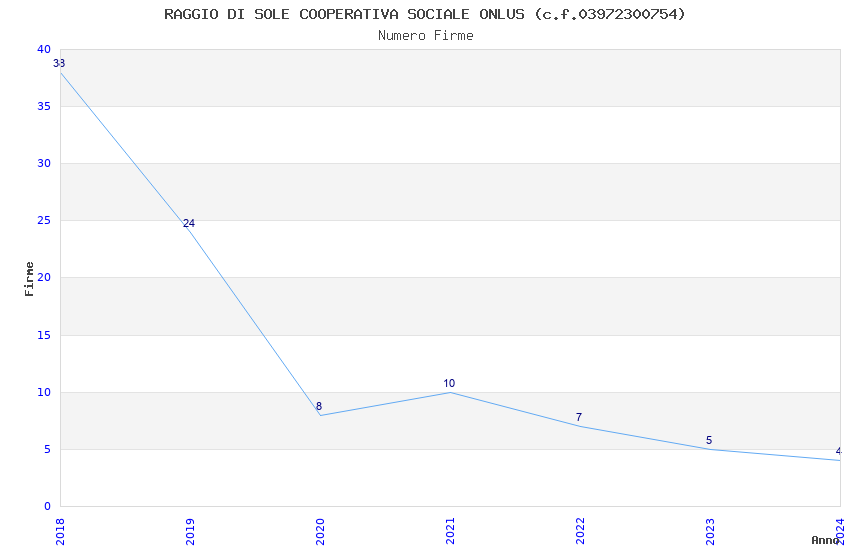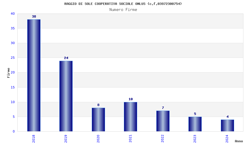 | Anno | Firme | Importi | Media | Naz. | Reg. | Prov. | Comu. |