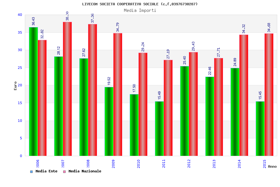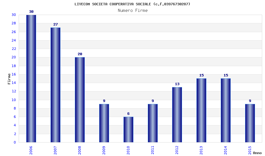 | Anno | Firme | Importi | Media | Naz. | Reg. | Prov. | Comu. |