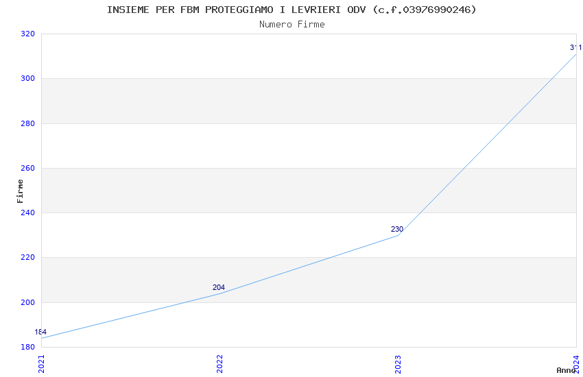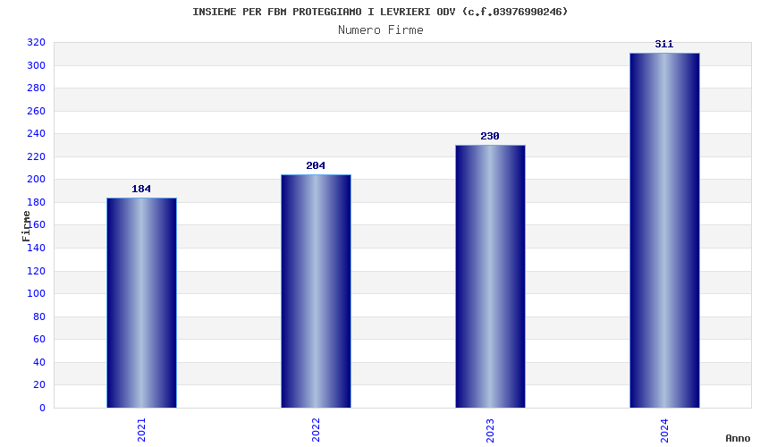 | Anno | Firme | Importi | Media | Naz. | Reg. | Prov. | Comu. |