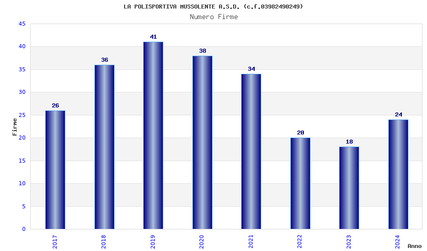 | Anno | Firme | Importi | Media | Naz. | Reg. | Prov. | Comu. |