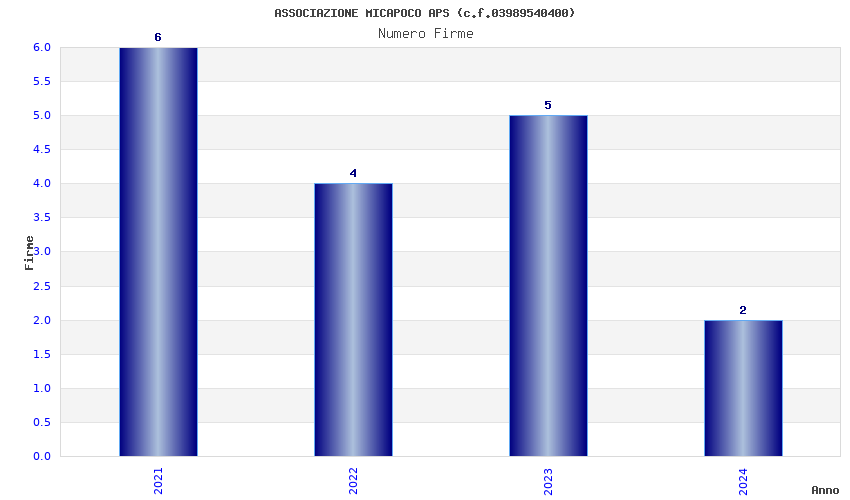 | Anno | Firme | Importi | Media | Naz. | Reg. | Prov. | Comu. |