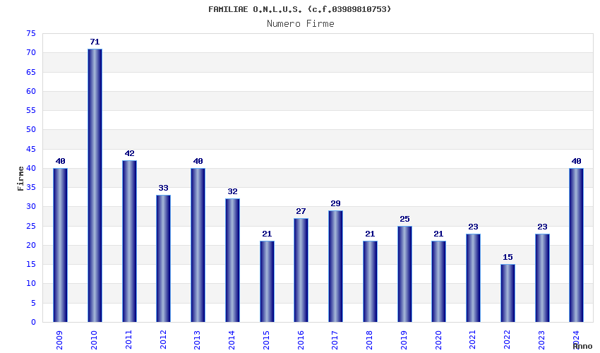 | Anno | Firme | Importi | Media | Naz. | Reg. | Prov. | Comu. |