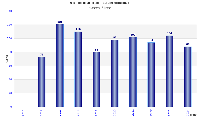 | Anno | Firme | Importi | Media | Naz. | Reg. | Prov. | Comu. |