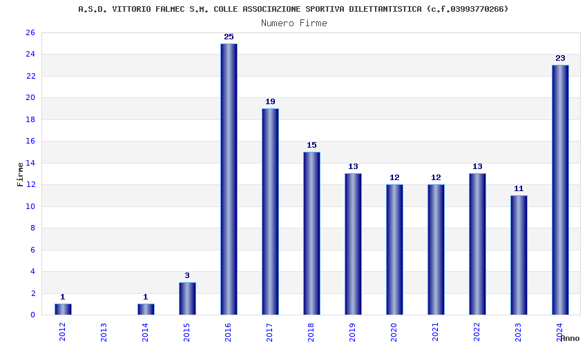 | Anno | Firme | Importi | Media | Naz. | Reg. | Prov. | Comu. |