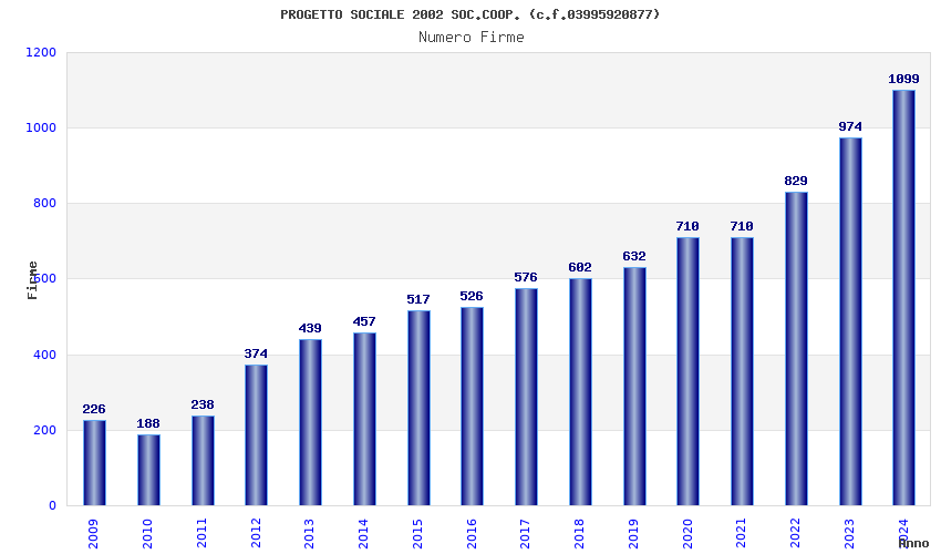 | Anno | Firme | Importi | Media | Naz. | Reg. | Prov. | Comu. |