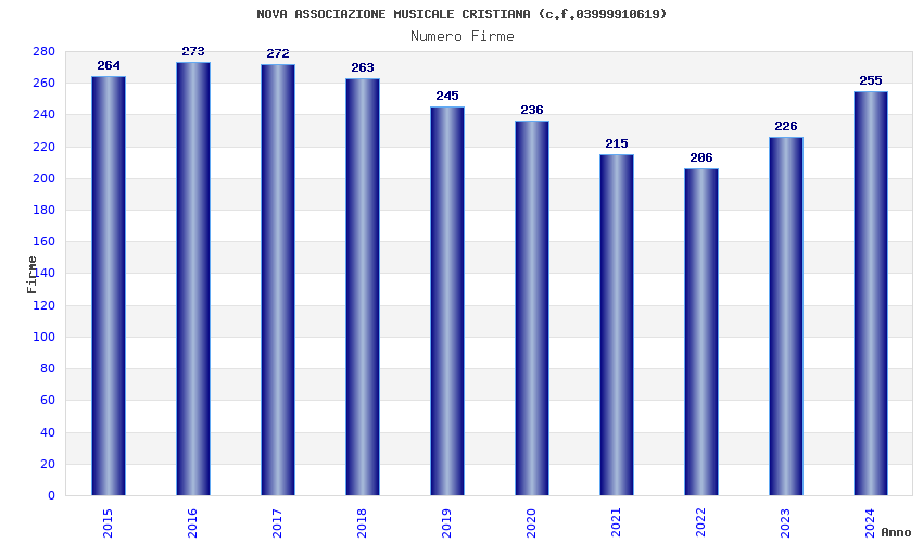 | Anno | Firme | Importi | Media | Naz. | Reg. | Prov. | Comu. |