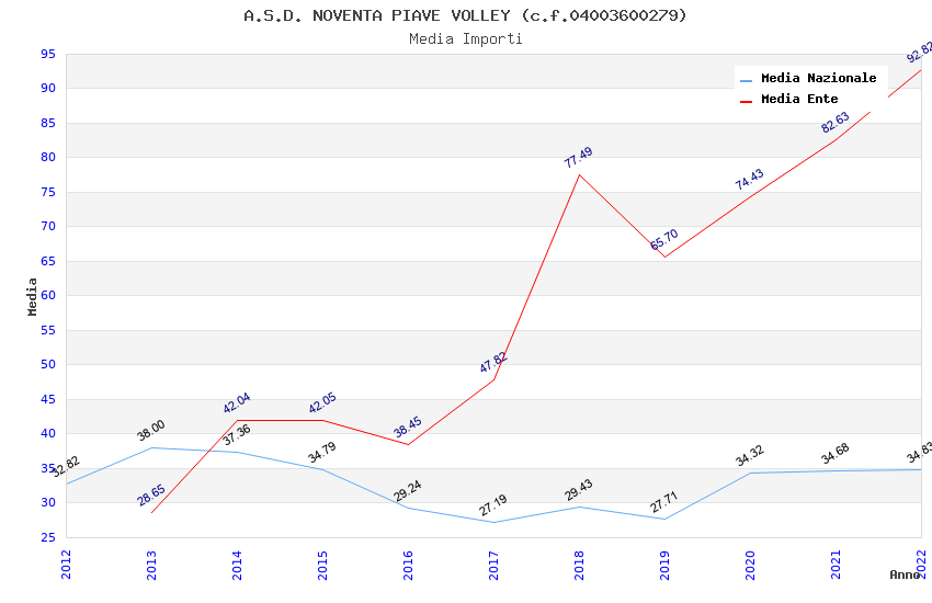 | Anno | Firme | Importi | Media | Naz. | Reg. | Prov. | Comu. |