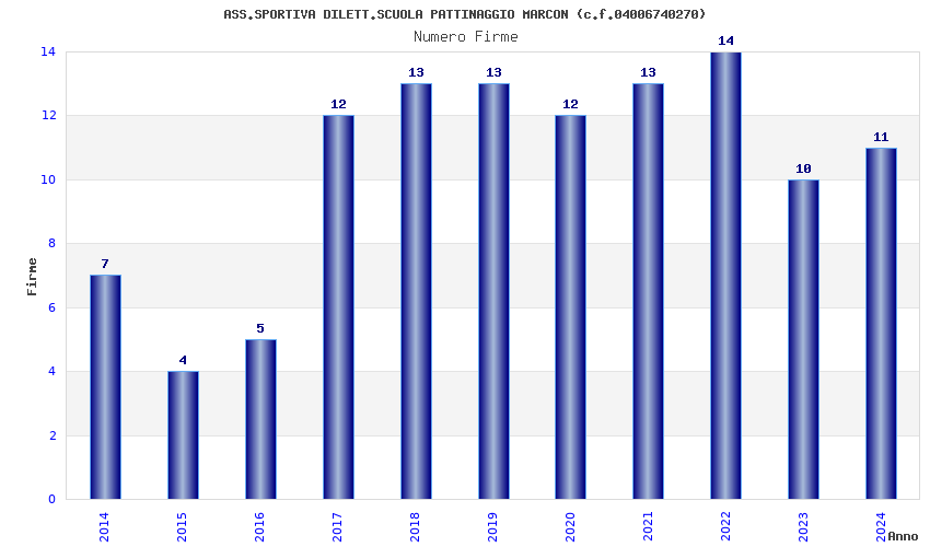 | Anno | Firme | Importi | Media | Naz. | Reg. | Prov. | Comu. |
