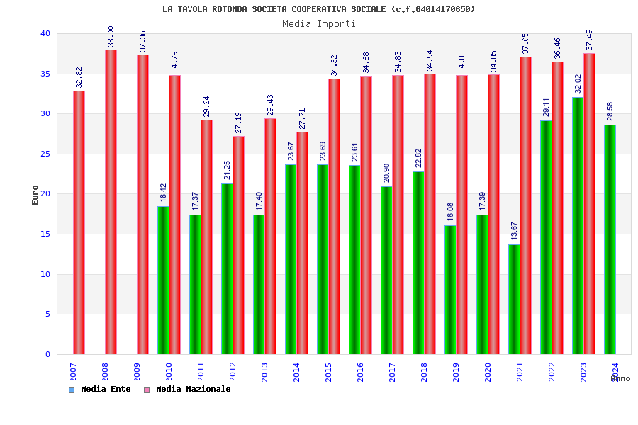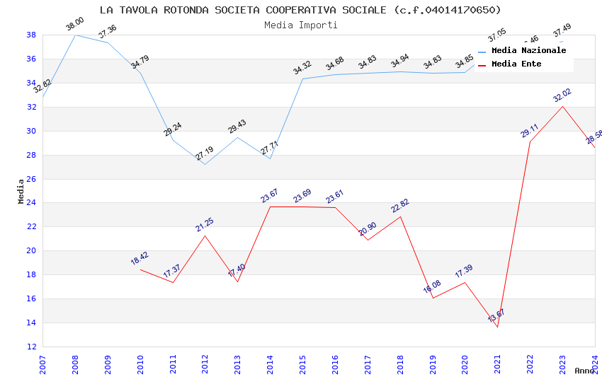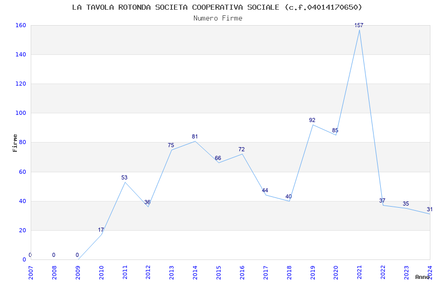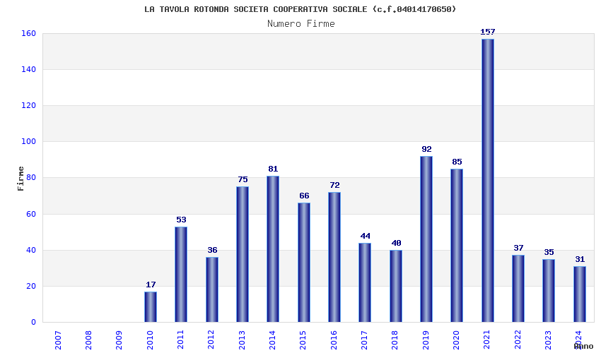 | Anno | Firme | Importi | Media | Naz. | Reg. | Prov. | Comu. |