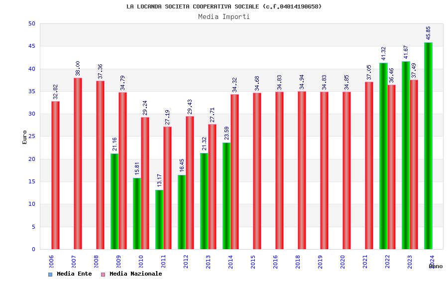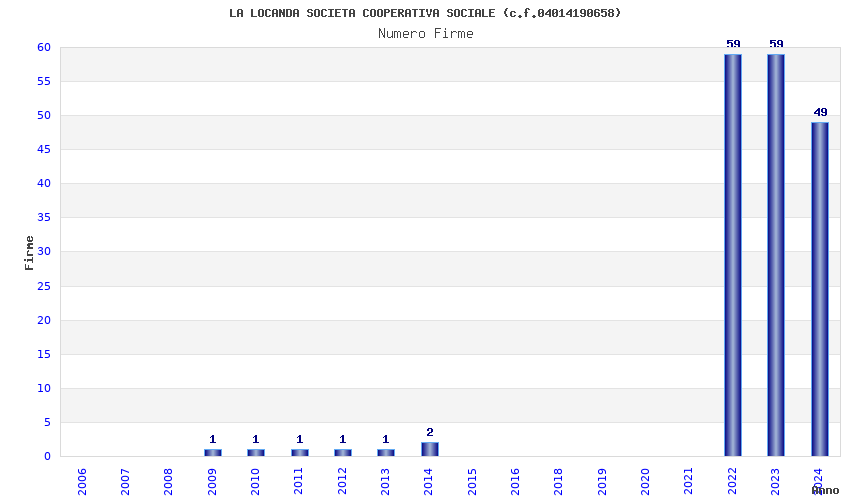 | Anno | Firme | Importi | Media | Naz. | Reg. | Prov. | Comu. |