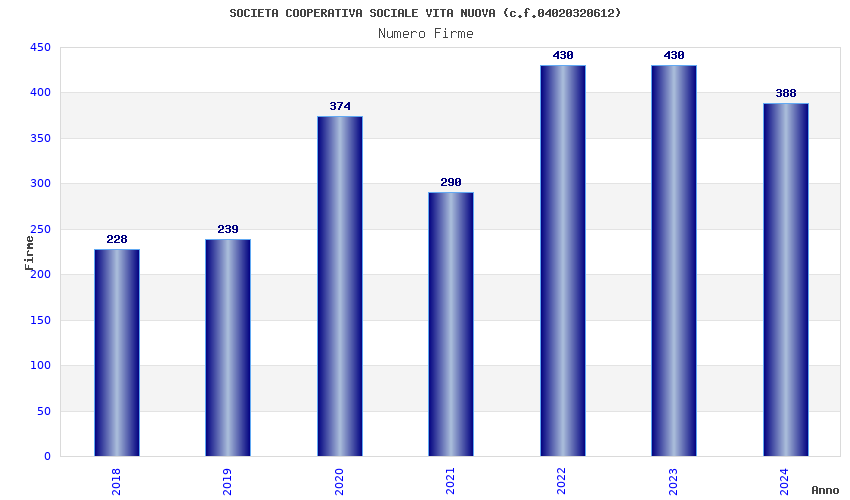 | Anno | Firme | Importi | Media | Naz. | Reg. | Prov. | Comu. |
