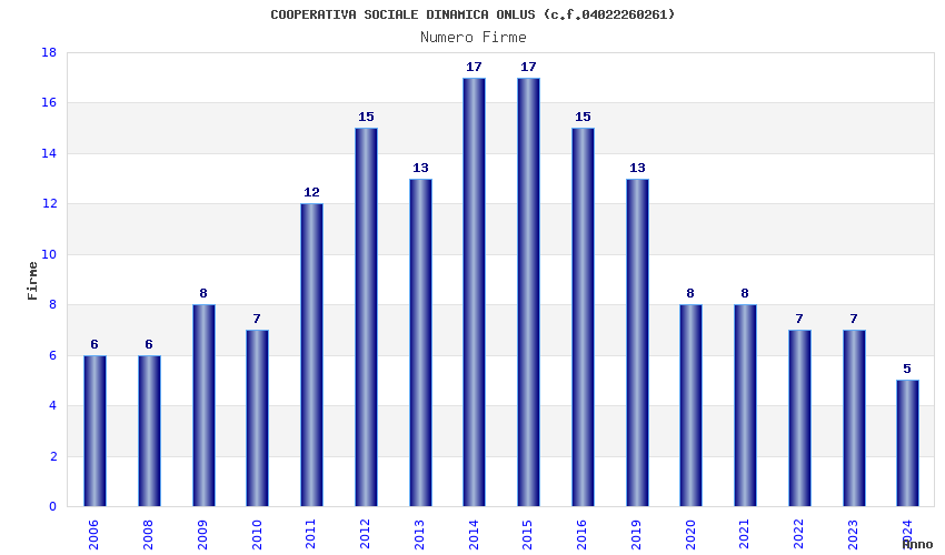 | Anno | Firme | Importi | Media | Naz. | Reg. | Prov. | Comu. |