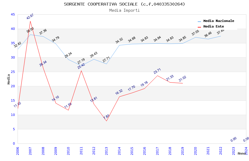 | Anno | Firme | Importi | Media | Naz. | Reg. | Prov. | Comu. |