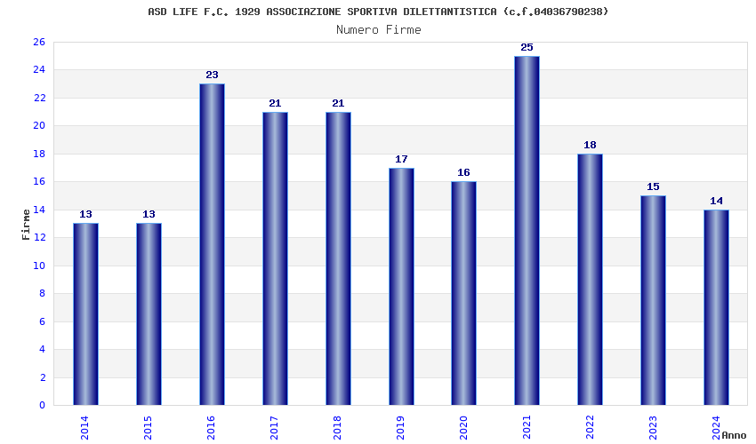 | 2021 | 25 | 2.732,46 | 109,30 | 18.997 | 1.757 | 346 | 164 |