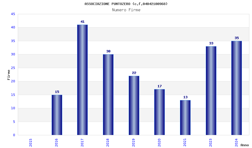 | Anno | Firme | Importi | Media | Naz. | Reg. | Prov. | Comu. |