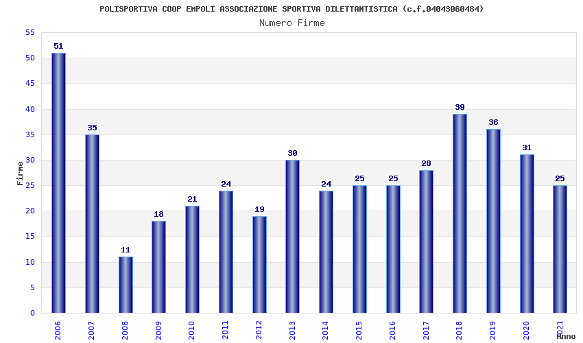 | Anno | Firme | Importi | Media | Naz. | Reg. | Prov. | Comu. |