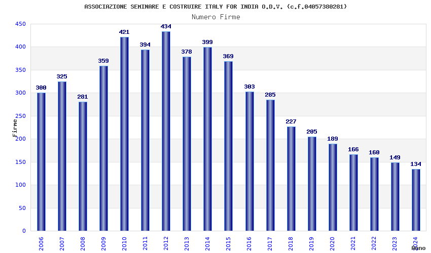 | Anno | Firme | Importi | Media | Naz. | Reg. | Prov. | Comu. |