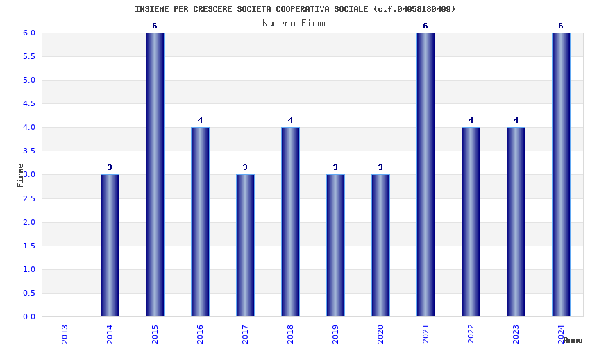 | Anno | Firme | Importi | Media | Naz. | Reg. | Prov. | Comu. |