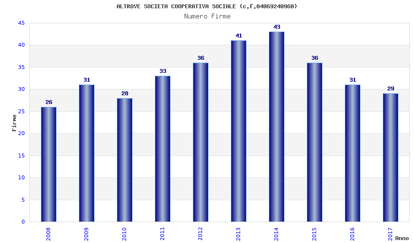 | Anno | Firme | Importi | Media | Naz. | Reg. | Prov. | Comu. |