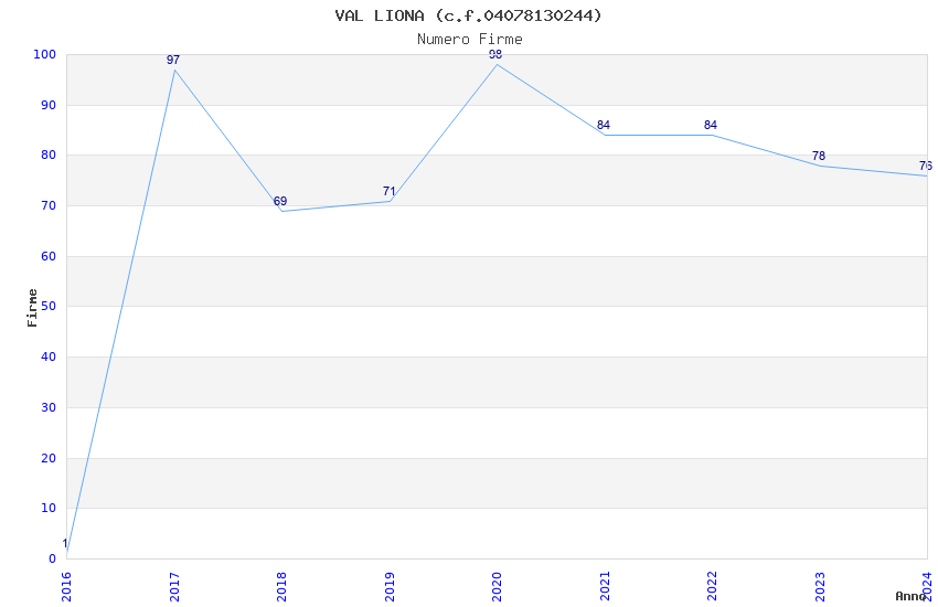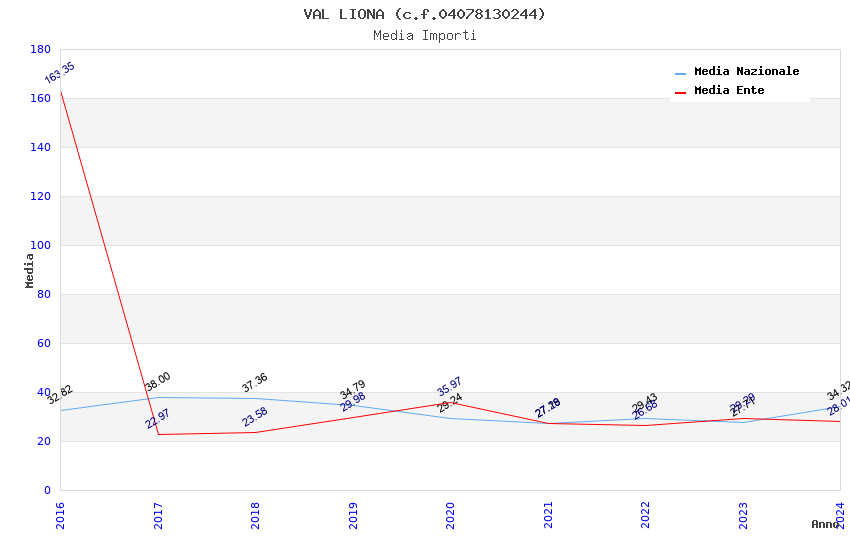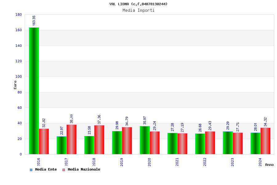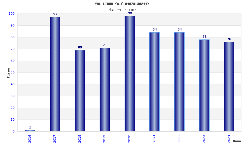 | Anno | Firme | Importi | Media | Naz. | Reg. | Prov. | Comu. |