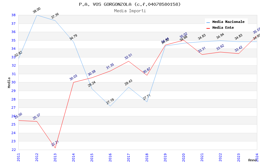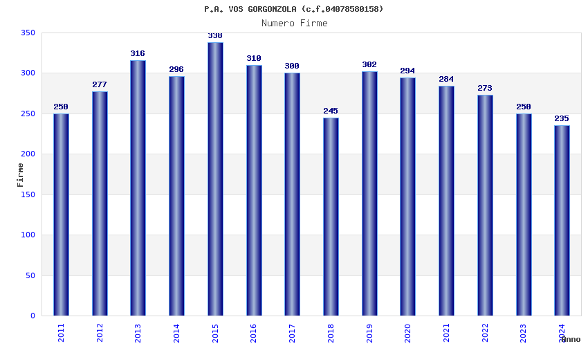 | Anno | Firme | Importi | Media | Naz. | Reg. | Prov. | Comu. |