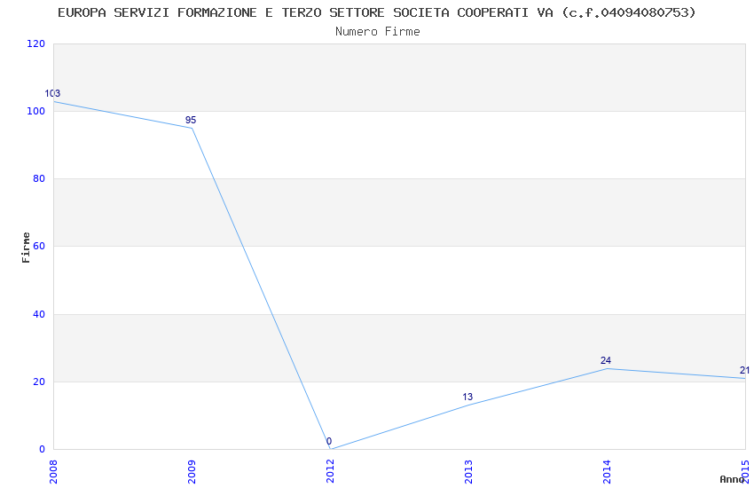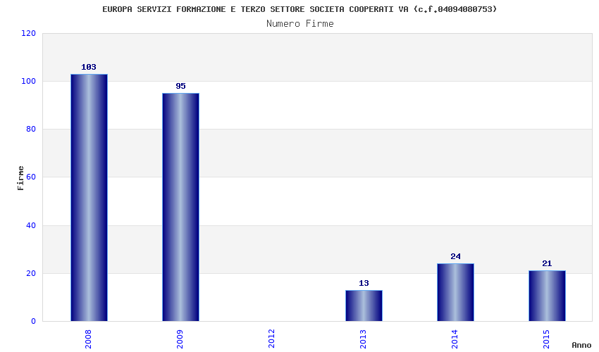 | Anno | Firme | Importi | Media | Naz. | Reg. | Prov. | Comu. |