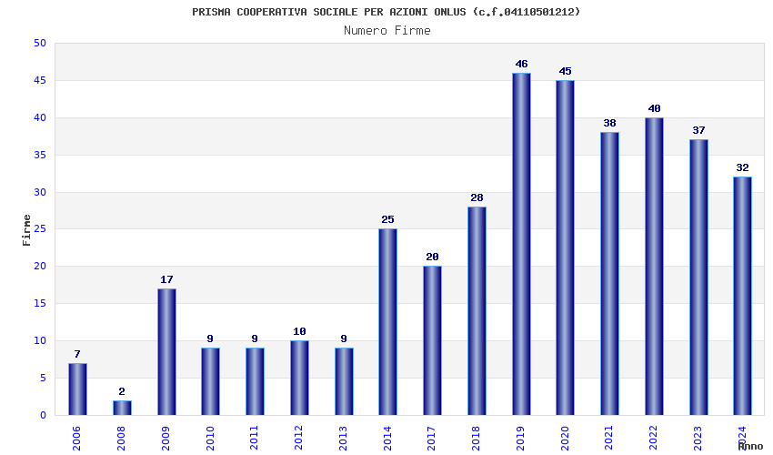 | Anno | Firme | Importi | Media | Naz. | Reg. | Prov. | Comu. |