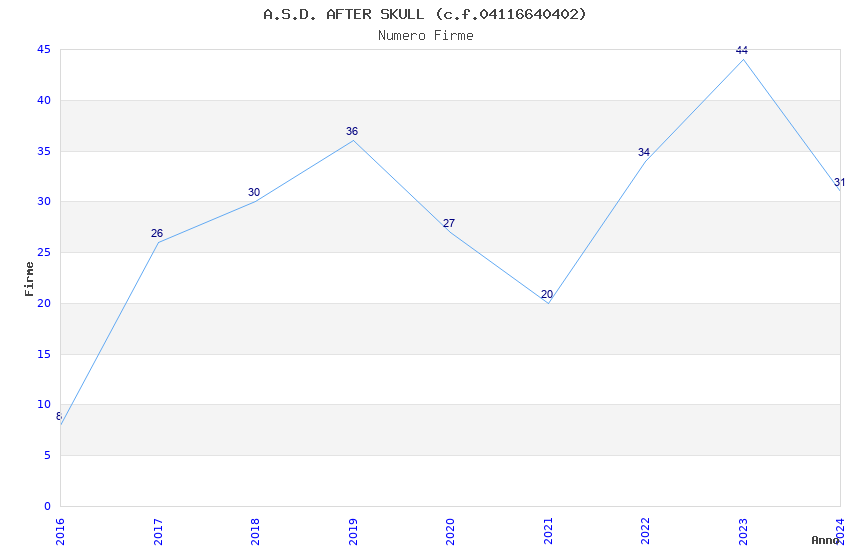 | 2023 | 44 | 1.220,87 | 27,75 | 32.550 | 2.855 | 276 | 4 |