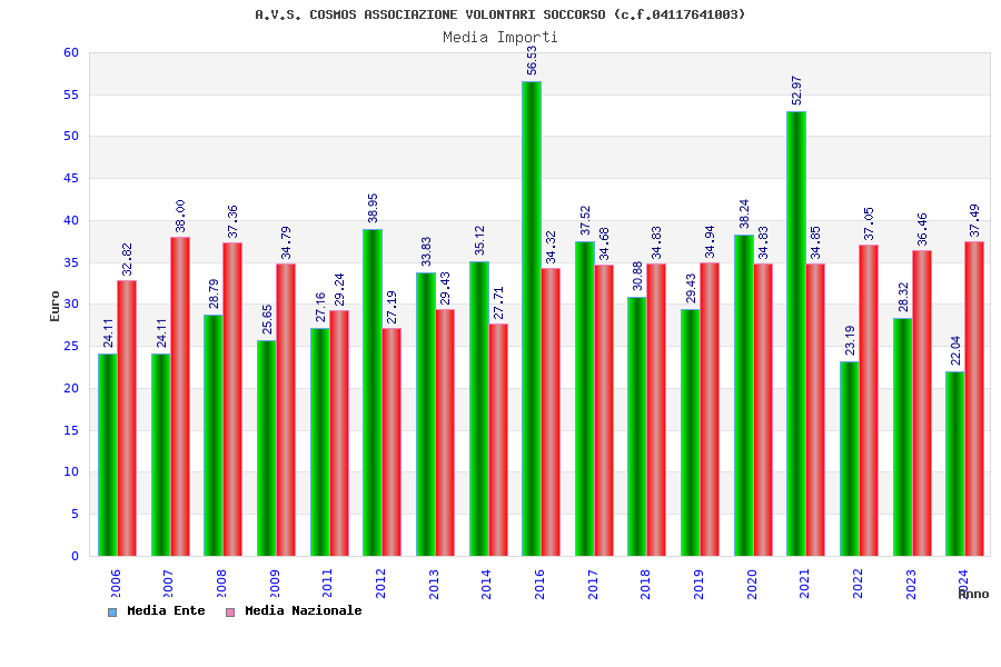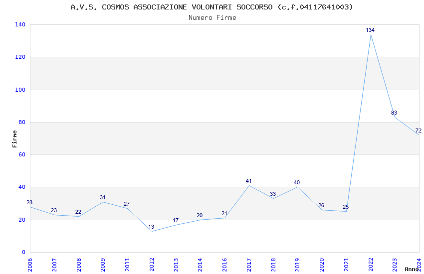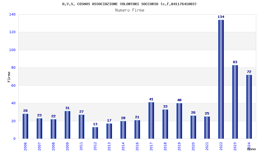 | Anno | Firme | Importi | Media | Naz. | Reg. | Prov. | Comu. |