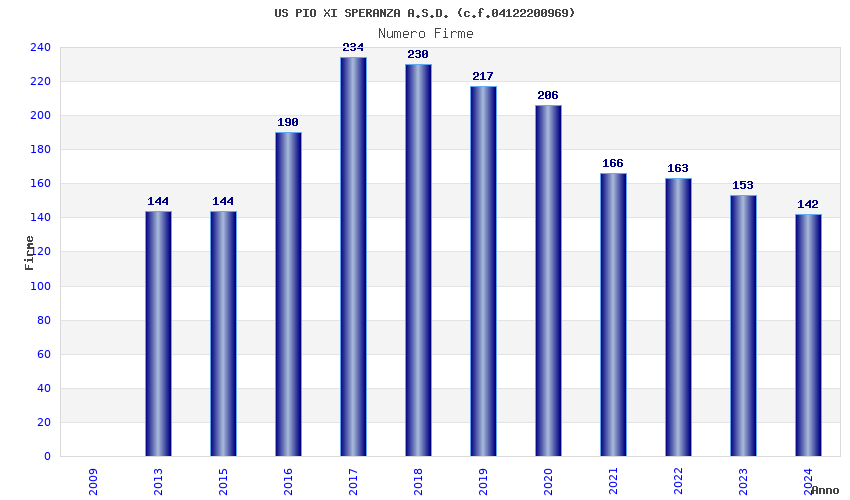 | Anno | Firme | Importi | Media | Naz. | Reg. | Prov. | Comu. |