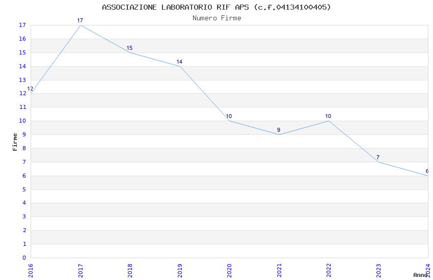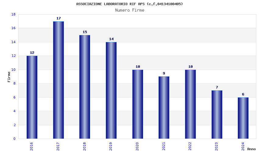| Anno | Firme | Importi | Media | Naz. | Reg. | Prov. | Comu. |