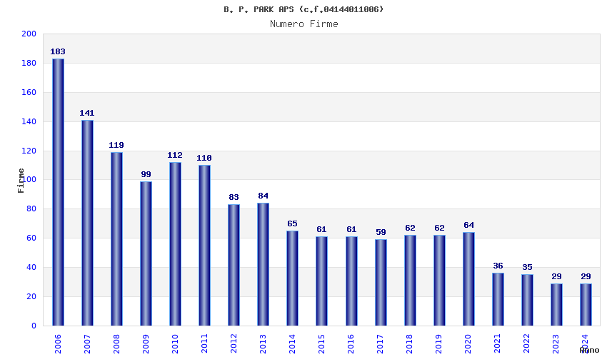 | Anno | Firme | Importi | Media | Naz. | Reg. | Prov. | Comu. |