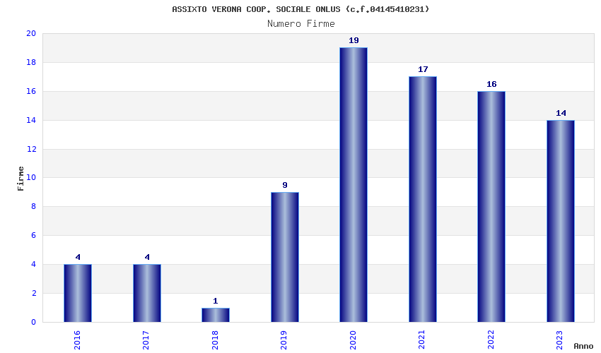 | Anno | Firme | Importi | Media | Naz. | Reg. | Prov. | Comu. |