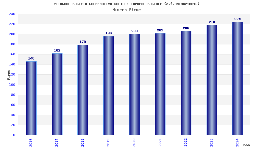 | Anno | Firme | Importi | Media | Naz. | Reg. | Prov. | Comu. |