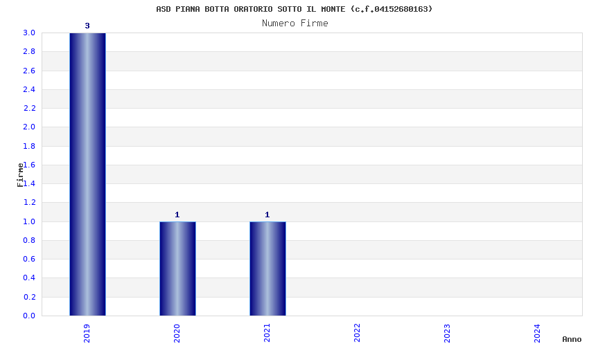 | Anno | Firme | Importi | Media | Naz. | Reg. | Prov. | Comu. |