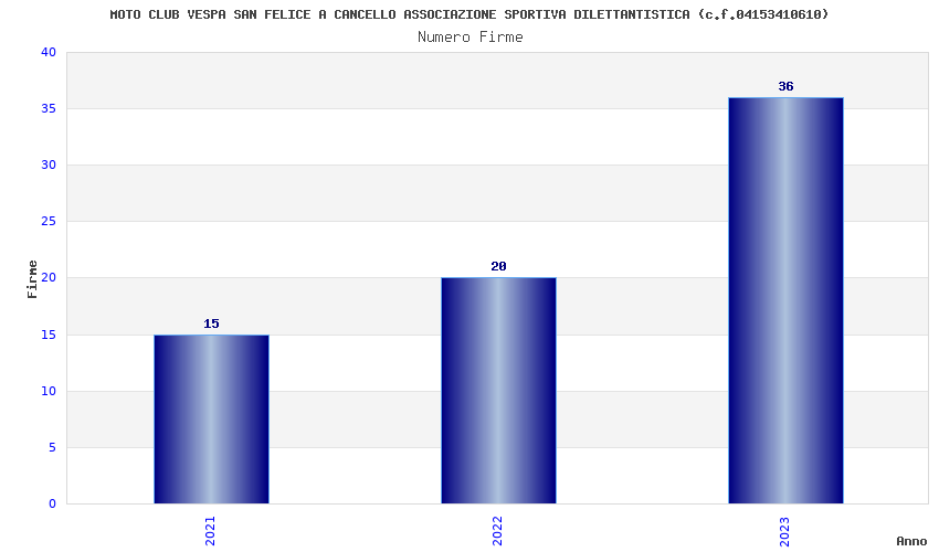 | Anno | Firme | Importi | Media | Naz. | Reg. | Prov. | Comu. |
