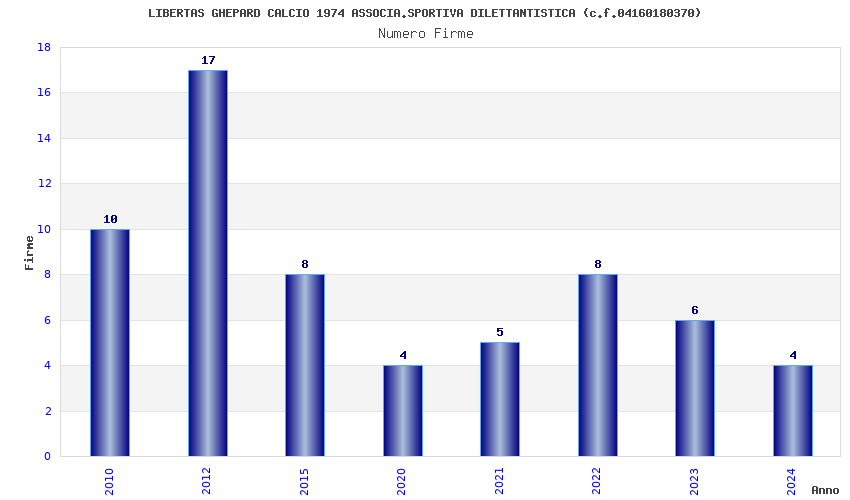 | Anno | Firme | Importi | Media | Naz. | Reg. | Prov. | Comu. |