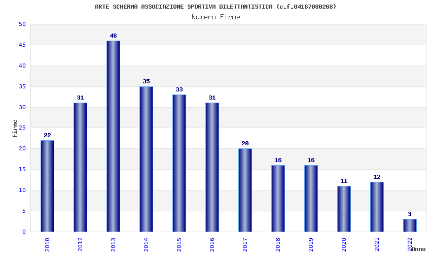 | Anno | Firme | Importi | Media | Naz. | Reg. | Prov. | Comu. |