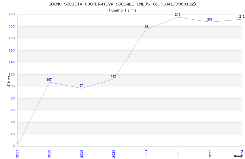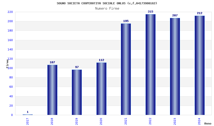 | Anno | Firme | Importi | Media | Naz. | Reg. | Prov. | Comu. |