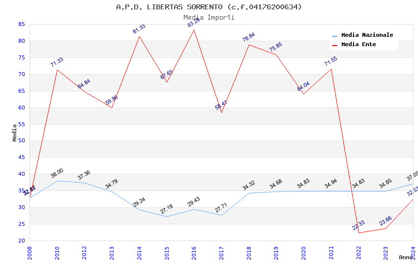 | Anno | Firme | Importi | Media | Naz. | Reg. | Prov. | Comu. |