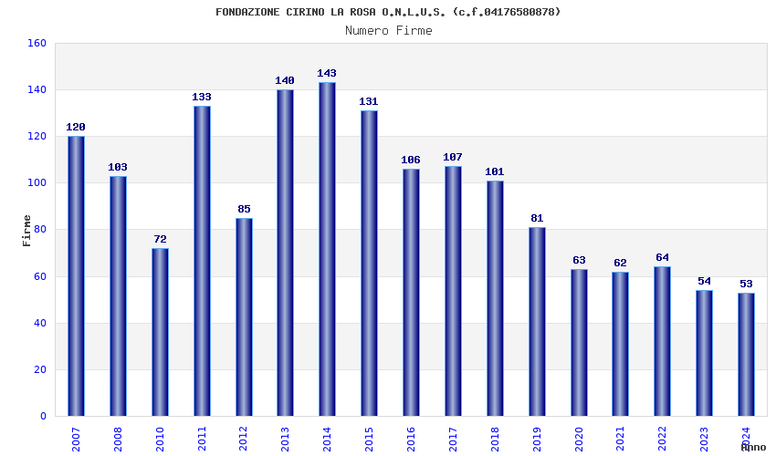 | Anno | Firme | Importi | Media | Naz. | Reg. | Prov. | Comu. |