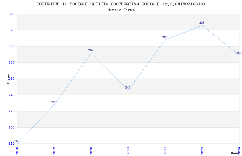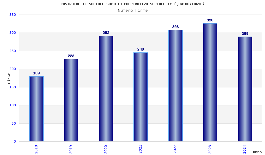 | Anno | Firme | Importi | Media | Naz. | Reg. | Prov. | Comu. |