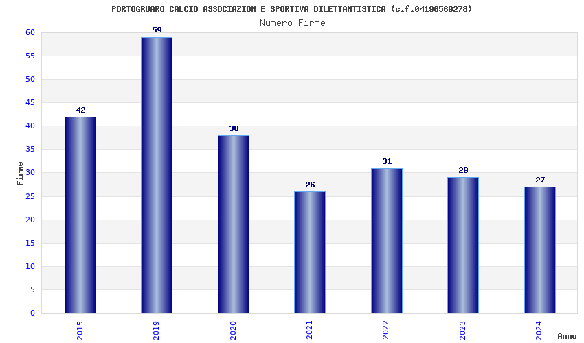 | Anno | Firme | Importi | Media | Naz. | Reg. | Prov. | Comu. |