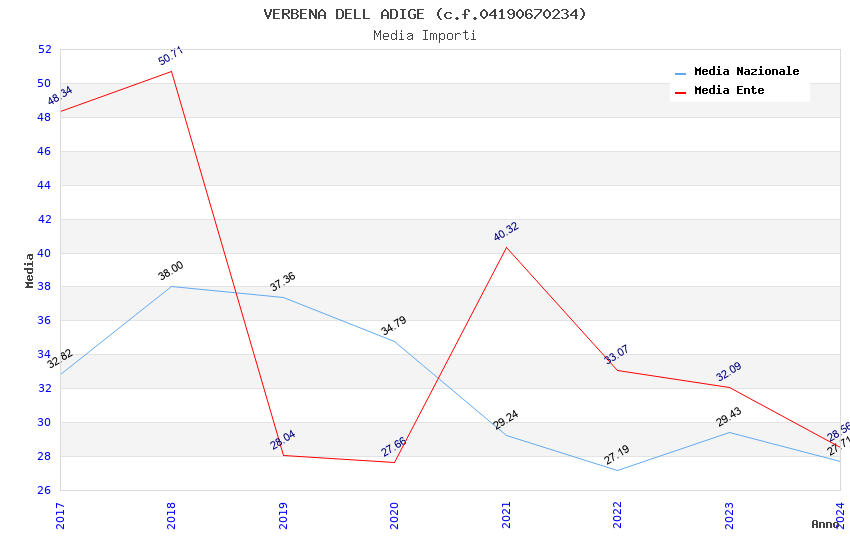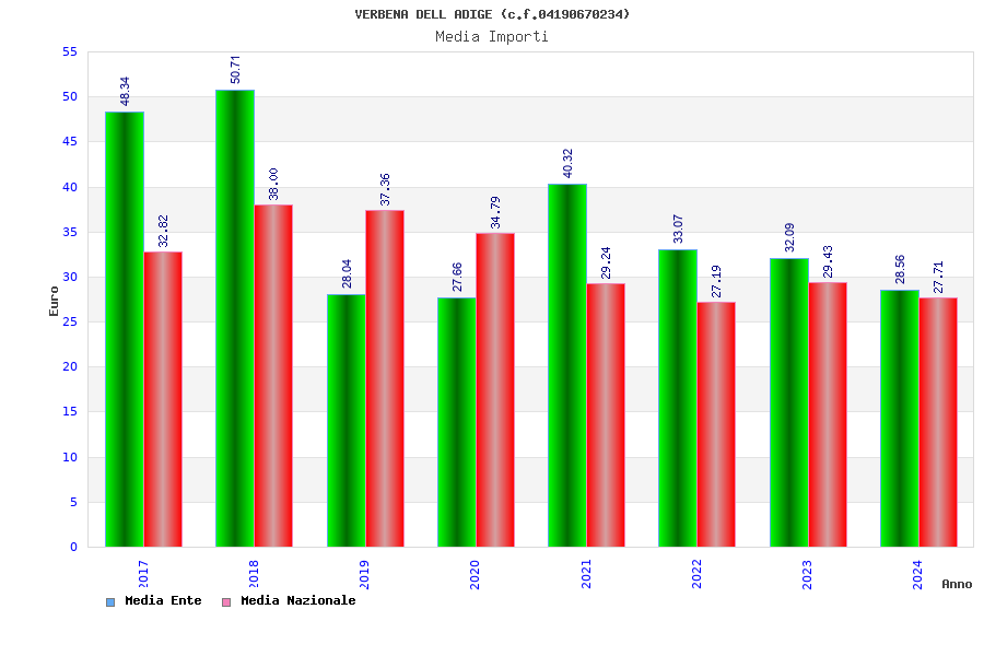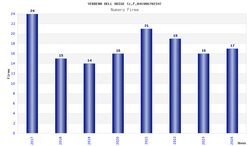 | Anno | Firme | Importi | Media | Naz. | Reg. | Prov. | Comu. |