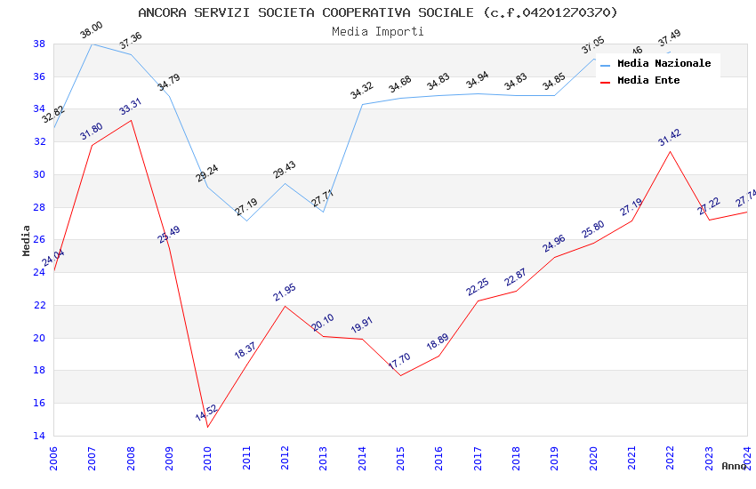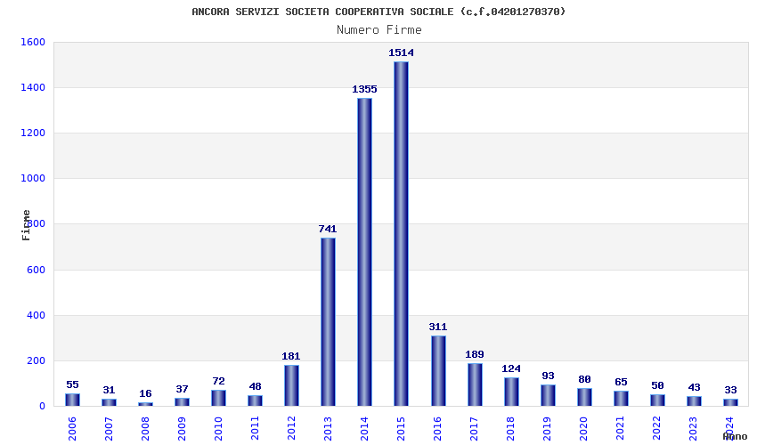| Anno | Firme | Importi | Media | Naz. | Reg. | Prov. | Comu. |