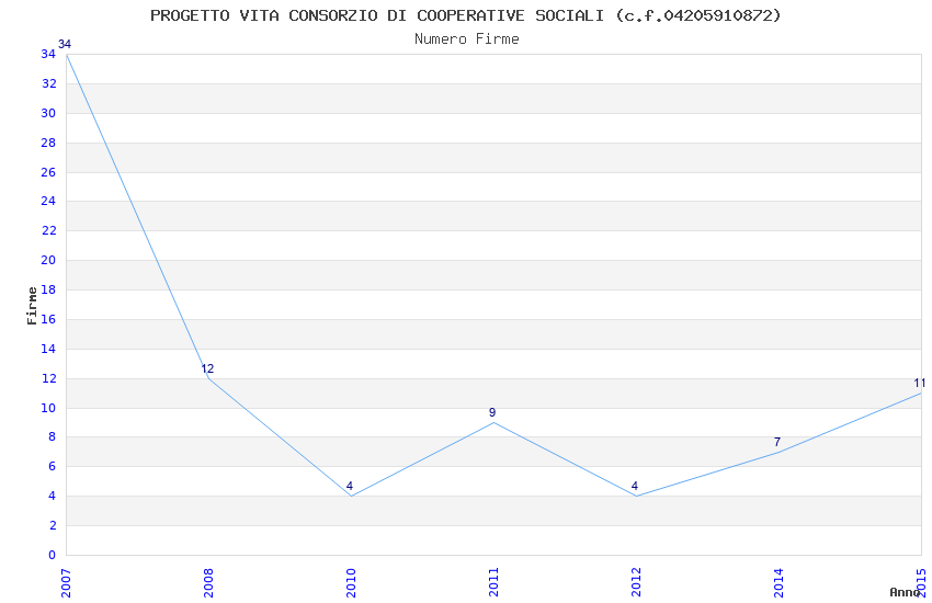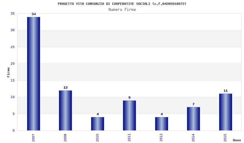 | Anno | Firme | Importi | Media | Naz. | Reg. | Prov. | Comu. |
