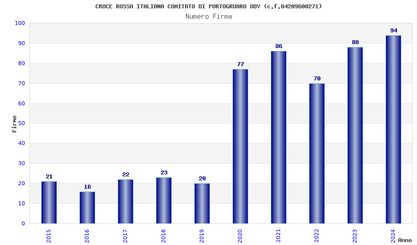 | 2020 | 77 | 1.732,31 | 22,50 | 26.785 | 2.510 | 365 | 19 |